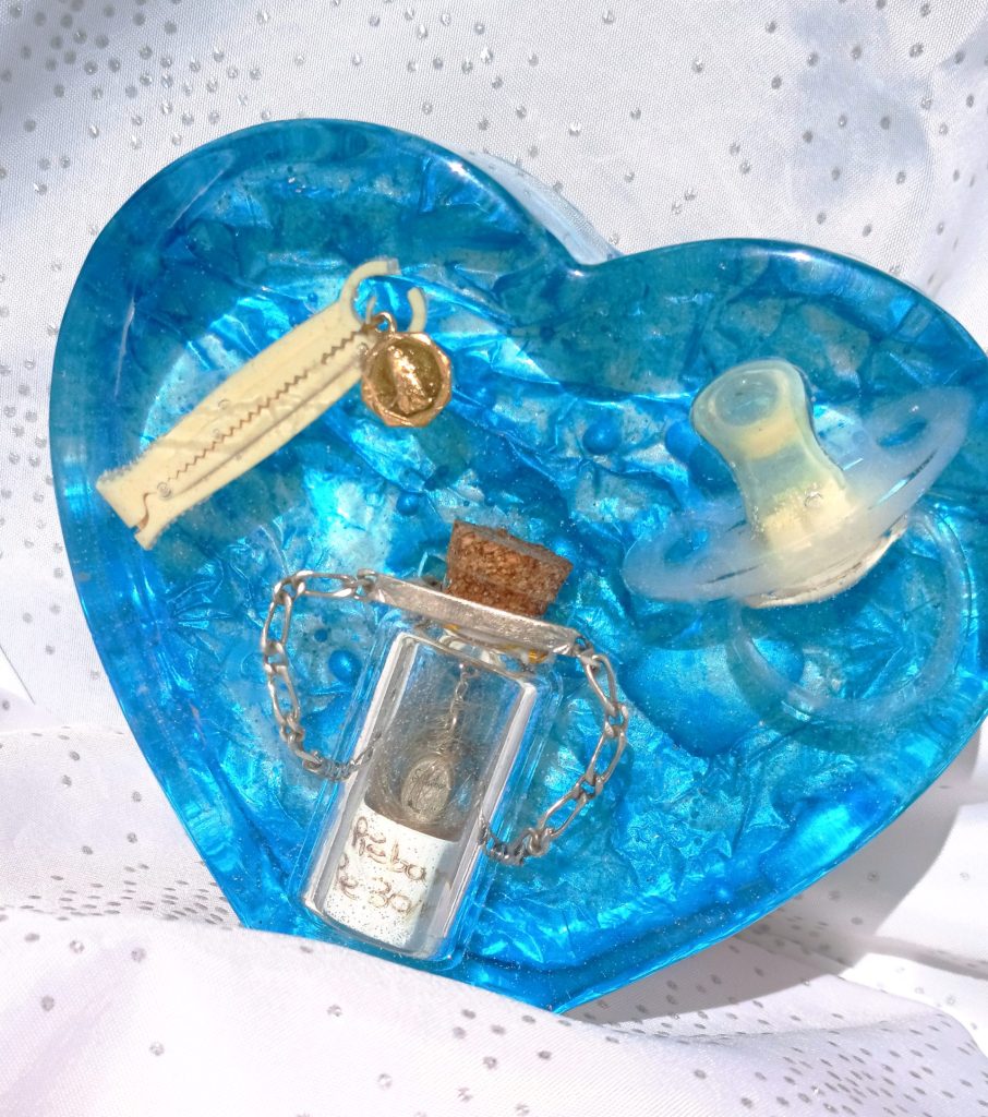Nous proposons des créations personnalisables selon vos envies. Fleurs séchées, bracelets de naissance ou objets symboliques peuvent être intégrés avec précision dans la matière. Chaque projet est étudié avec attention afin d’obtenir un rendu harmonieux, fidèle à votre demande et à votre histoire.