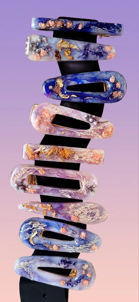 Notre atelier imagine et façonne des bijoux, des objets décoratifs et des créations personnalisées qui racontent une histoire. Grâce à la transparence de la résine époxy et à la finesse des finitions, chaque réalisation devient une pièce singulière, pensée pour sublimer vos moments précieux.